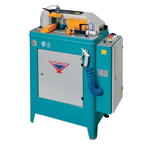 automatic end milling machine designed to work the ends of the profiles for correct assembly joints delas "T". Machine equipped with automatic feed cutoff, pneumatic gripper tires and disc removal strawberries "one-touch". KM215S version includes lubrication system for aluminum work. Power 1200 W, Speed 3000 rpm Weight 90 kg External dimensions 95x55x127 cm, Operating Pressure 6/8 Bar; aire14 consumption l / min.