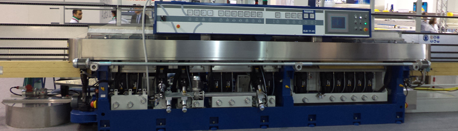 Maquinaria y equipos industriales para procesar vidrio plano: Transportar, manipular, cortar, canto pulir, perforar, biselar, lavar, templar, laminar y curvar.