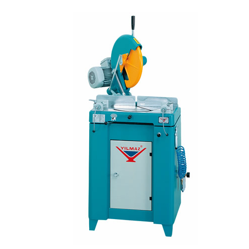 tronzadora manual descendente, disco de corte φ 400 mm. Posibilidad de hacer cortes en ángulos girando y bloqueando la base a: 15°; 22,5°; 30°; 45° y 90°. Equipada con prensores neumáticos, gabinete base, pistola de aire. En la versión KD400PS incluye sistema neumático de lubricación necesario para la carpintería de aluminio. Potencia 2,2 kW; Velocidad 3000 rpm; Peso 120 kg; Medidas exteriores 80x71x149 cm; Presión de trabajo 6/8 Bar; Consumo aire 70 l/min.